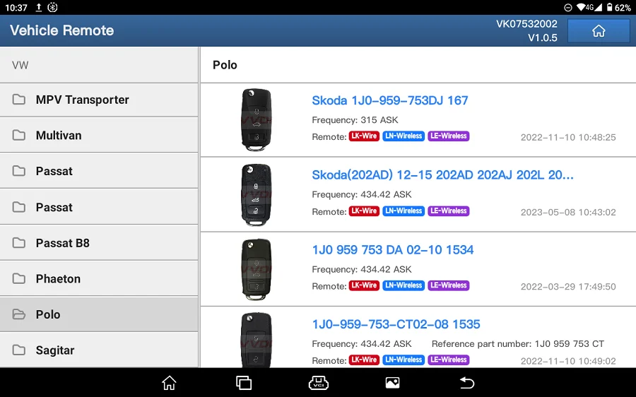 1. Enter the [Vehicle Remote] menu and select the corresponding smart key model to generate.